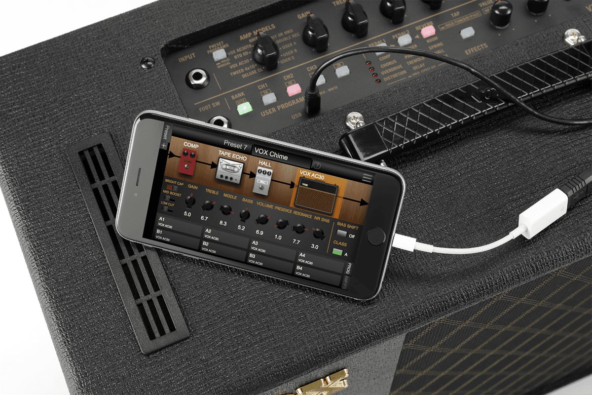 La section d’effets dispose de 12 effets classiques, basés sur certaines des pédales les plus emblématiques de l’histoire. Son port USB permet de connecter le VT40X à un PC, à un Mac ou à un appareil iOS (avec le kit adaptateur caméra USB — optionnel) et de gérer les programmes. Les réglages d’amplis et d’effets se personnalisent en utilisant le logiciel Tone Room de Vox, pour une édition vraiment en profondeur. Il est également facile de sauvegarder le résultat dans l’un des 8 emplacements utilisateur prévus à cet effet. Avec, par-dessus le marché, un accordeur embarqué, une entrée Aux in et une sortie casque. Ça va être difficile de le contrarier...