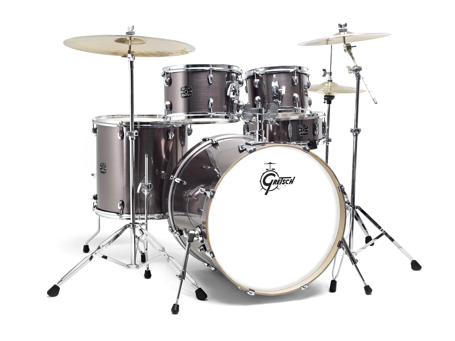 Le modèle Gretsch ENERGY est la toute nouvelle batterie pensée et développée pour les débutants. Elle est livrée avec un pack complet d’accessoires pour batterie ainsi que des cymbales. Les toms sont de tailles « Quick sizes », c'est-à-dire court, ce qui procure un son punchy et permettent un positionnement bas (l’idéal pour les jeunes batteurs). Les accessoires (hardware) sont double embase pour une très bonne stabilité et les semelles des pédales bénéficient d’un design unique et d’un confort de jeu redoutable.