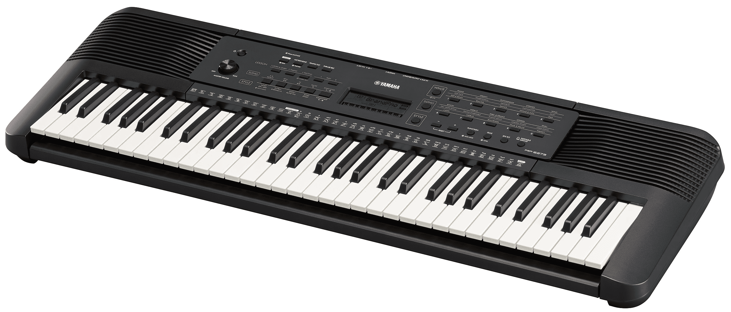 Le PSR-E273 est à la fois un excellent outil d'apprentissage et un instrument de musique performant. Il combine un grand nombre de sonorités et de styles ainsi que des fonctions d'apprentissage simples qui motivent les joueurs débutants, et qui les aident à développer leur potentiel et leur enthousiasme pour la pratique instrumentale. Les diverses fonctions ludiques et éducatives du PSR-E273 garantissent des progrès rapides, rendant le processus d'apprentissage tellement amusant que vos enfants ne se lasseront jamais de jouer, sans même que vous ne leurs imposiez.