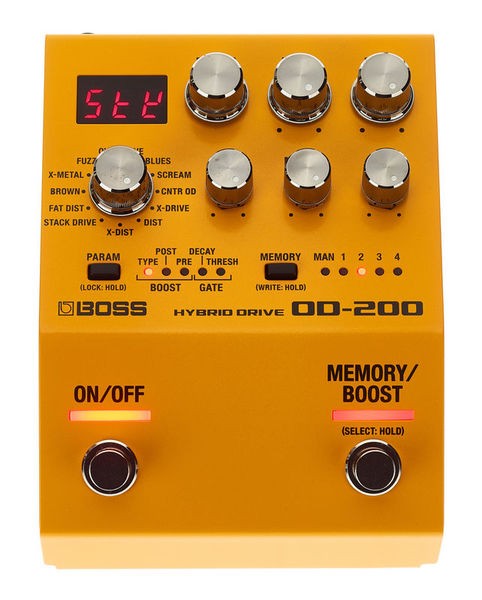 La pédale BOSS OD-200 est capable de produire tous les sons d’overdrive que vous pouvez imaginer grâce à 12 modes uniques, un circuit hybride analogique/numérique, un EQ trois bandes et de puissants Boosts Pré et Post permettant un modelage ultra détaillé du gain. Un circuit de Gate évolué est également intégré