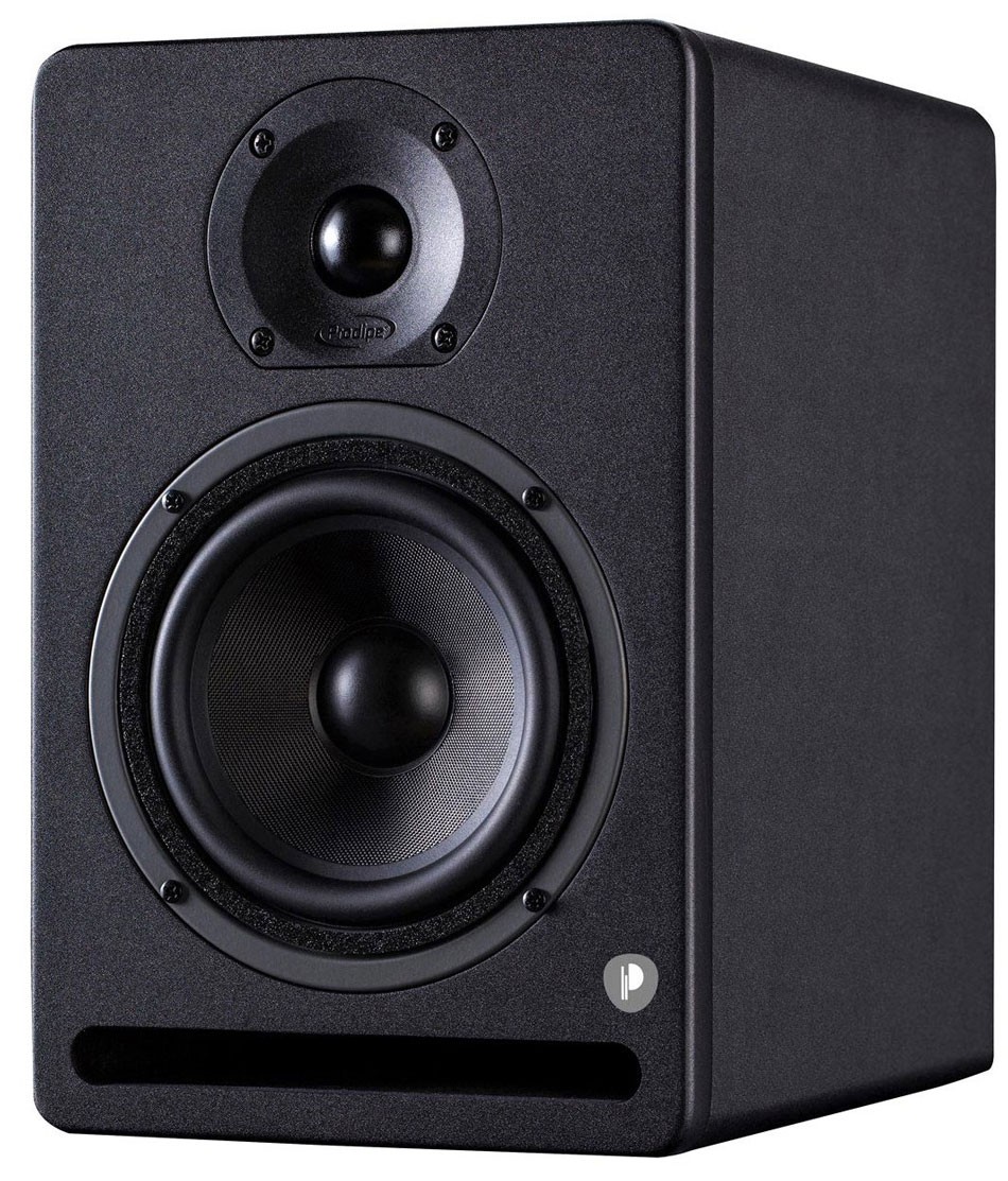Les tweeters, réalisés en dôme de néodymium, apportent une présence et une clarté sans faille, et ce, au-delà des 20 kHz, afin d'obtenir une musicalité exemplaire. Les aimants des transducteurs sont blindés par des caches en acier anodisés. Le filtrage actif a entièrement été revu afin d'avoir une fréquence de séparation des deux transducteurs sans accident, ni bosse. Contrairement à de nombreuses autres références, nous avons placé l’évent de type « Bass reflex » sur l’avant afin d’améliorer la décompression sur les basses, ce qui permet un positionnement de l’enceinte bien plus facile. La connectique est complète pour une utilisation universelle : XLR / Jack TRS 6.35 pour une connexion symétrique, et Cinch (RCA) pour une connexion asymétrique.