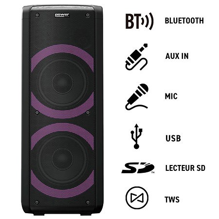 La GOFUN 100 est une Sono portable Bluetooth polyvalente intégrant un lecteur USB, de carte SD, une entrée AUX, et deux entrées de micro filaires. Façade équipée de LED Multicolore pour des effets d’animations dynamiques au rythme de la musique. Plusieurs patterns d’animation light.