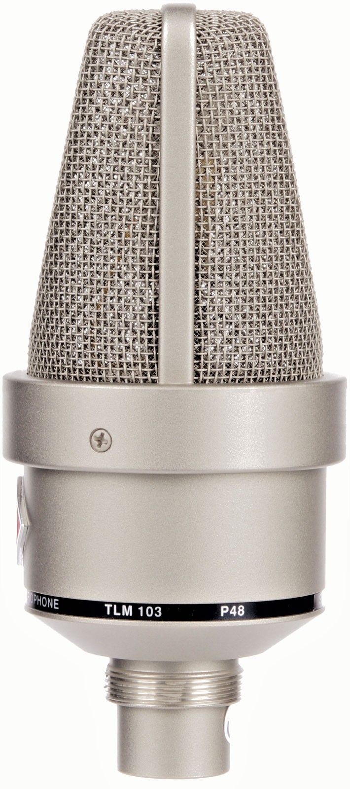 Utilisant le circuit de sortie sans transformateur déjà éprouvé sur de nombreux modèles de microphones Neumann, le TLM 103 assure un niveau de bruit de fond propre extrêmement réduit et possède un niveau de pression sonore maximal admissible extrêmement élevé. Sa capsule, dérivée de celle utilisée sur le modèle U 87, est de directivité cardioïde, possède un son très équilibré et assure une excellente atténuation des signaux provenant de l'arrière.